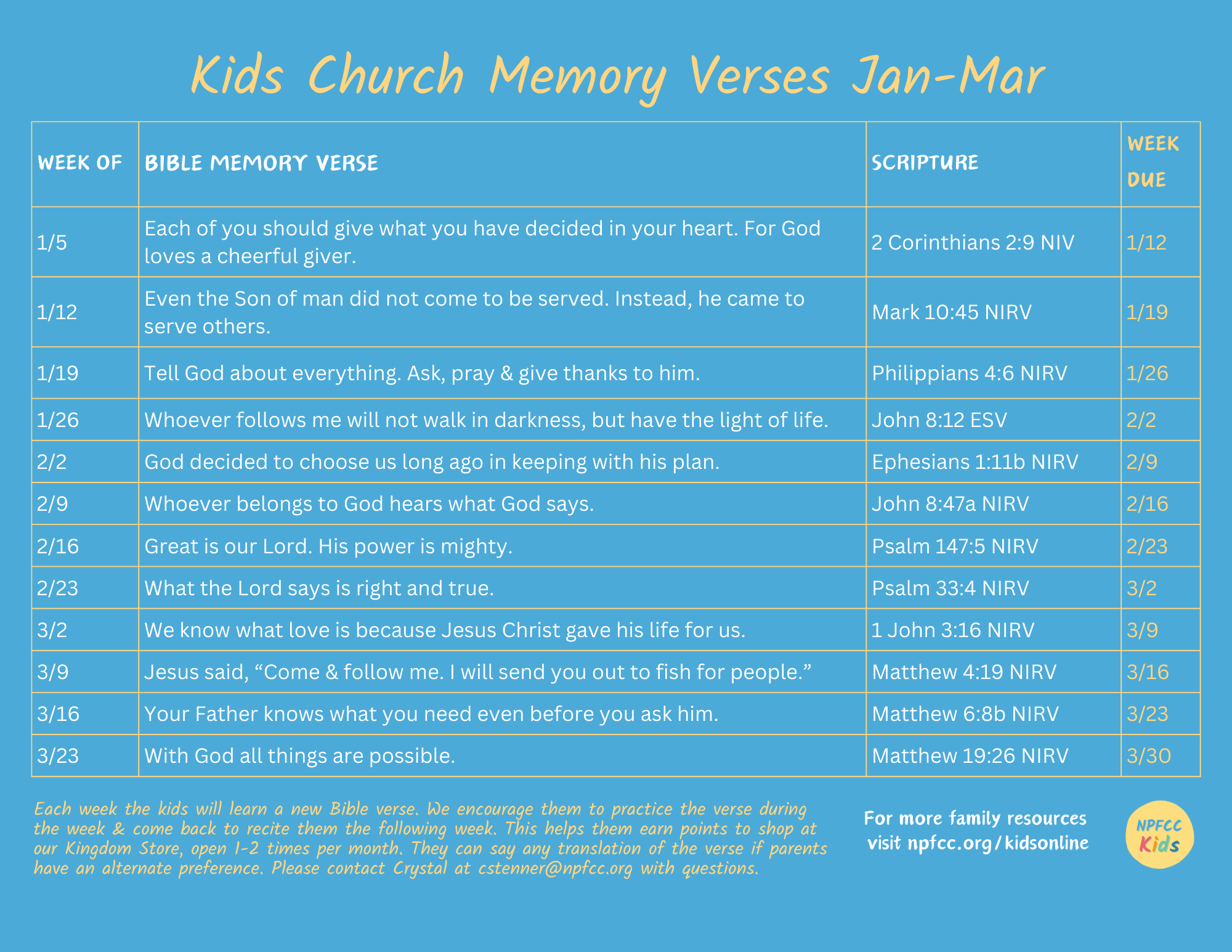 See what we are teaching each month and find additional activities and resources at our Kids Online Page.